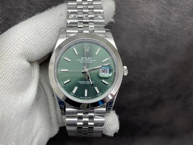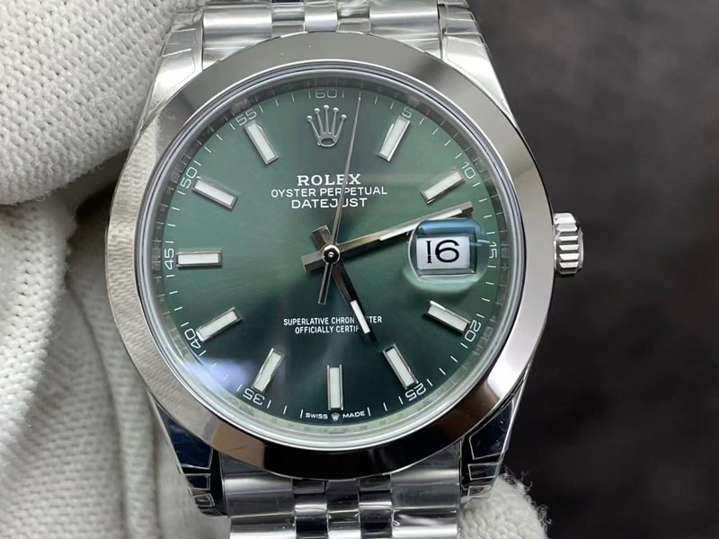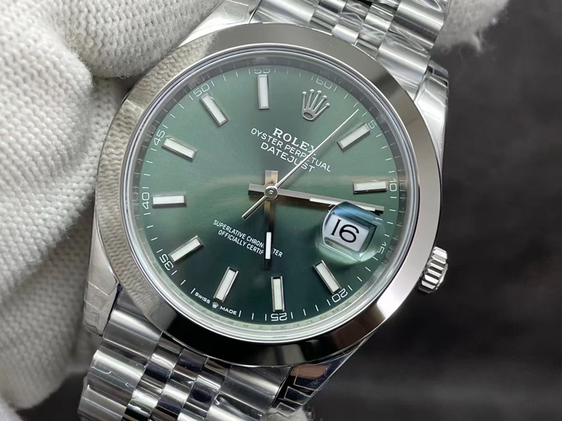 VS厂劳力士薄荷绿光圈日志41M“面”好,表盘太阳纹清晰细腻,淡雅光泽,隐约而独特,随着手腕摆动显不同光泽,VS厂行业新突破:表盘底色不会泛雾显白。
