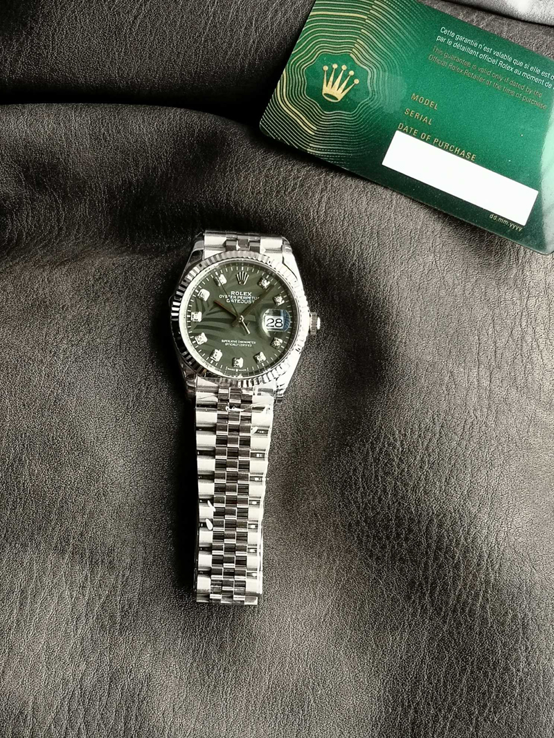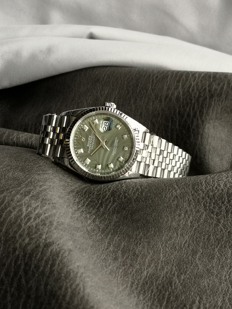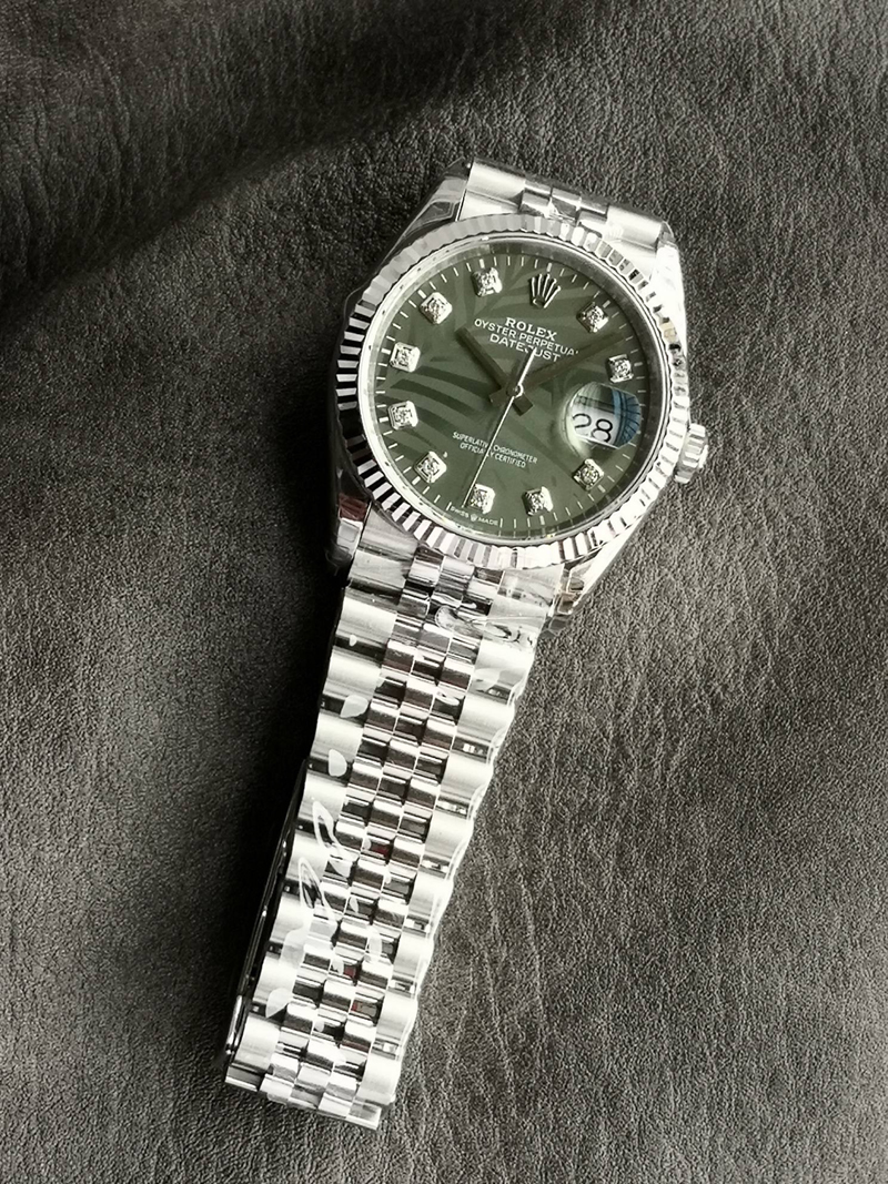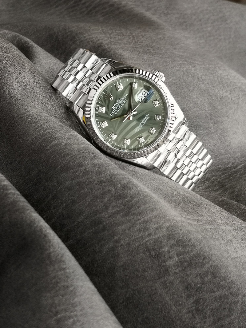 表盘:棕榈叶绿色钻面表盘