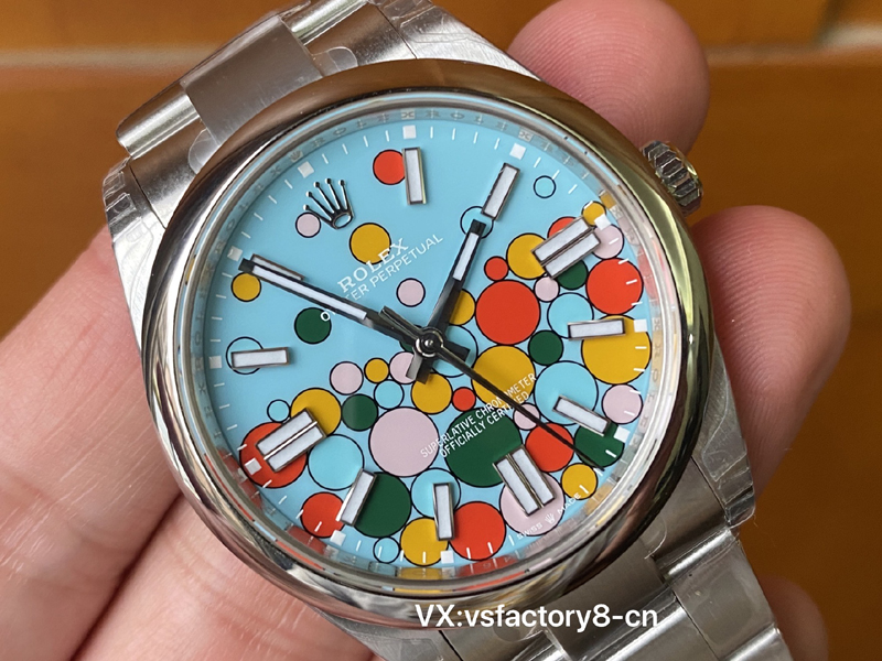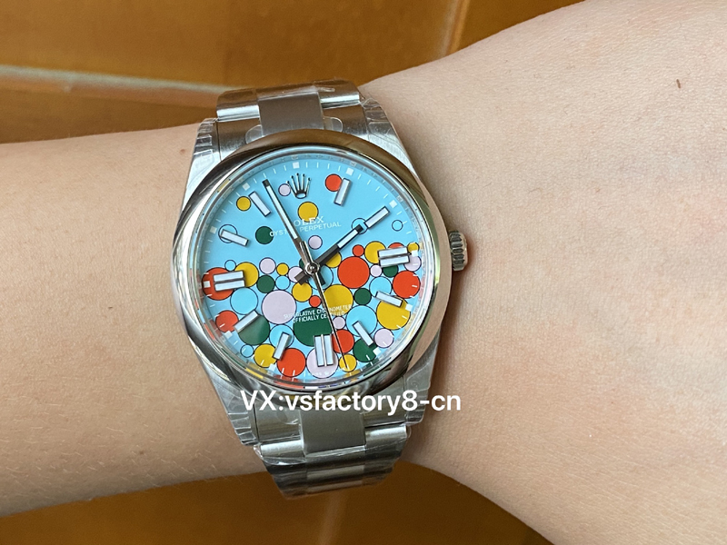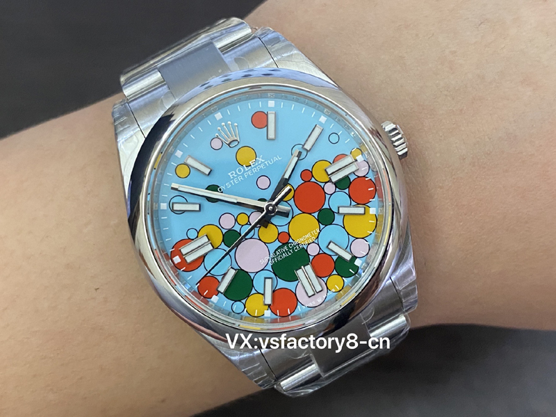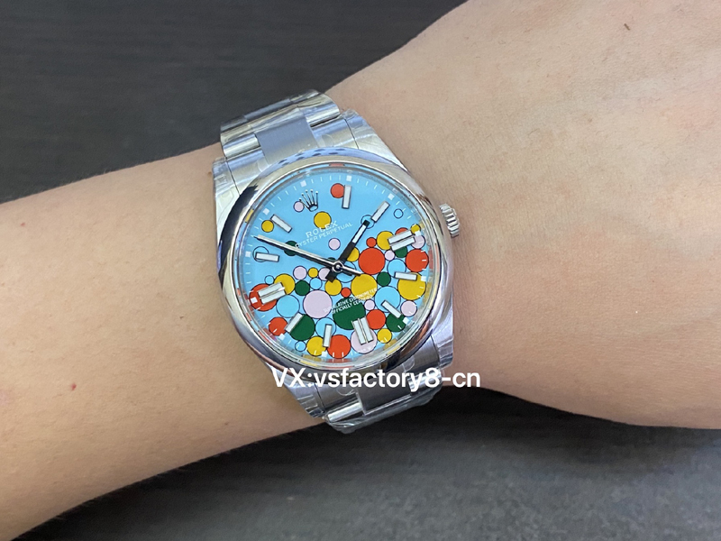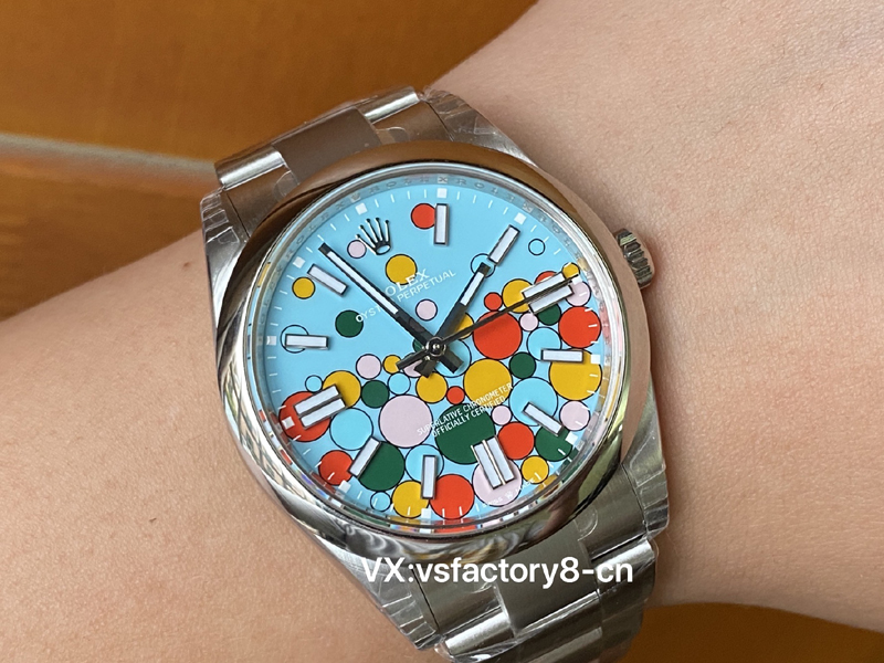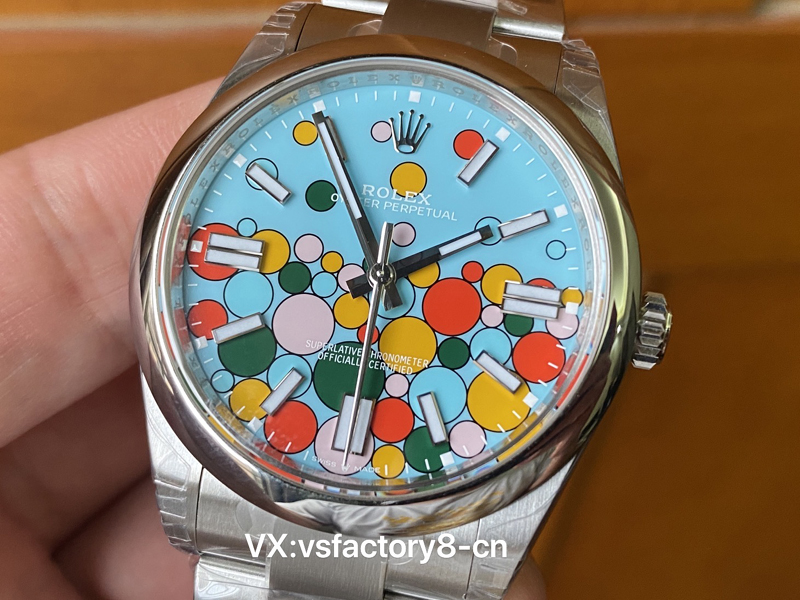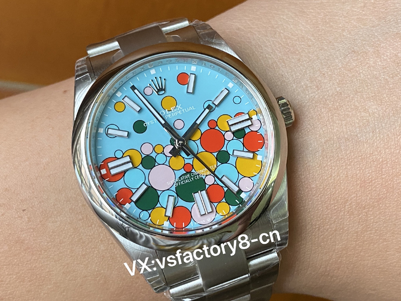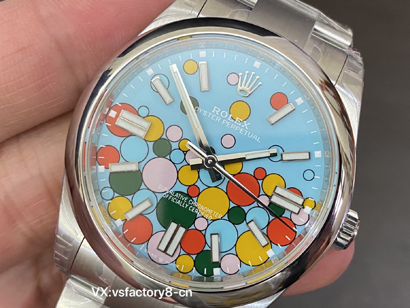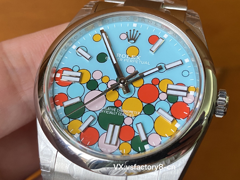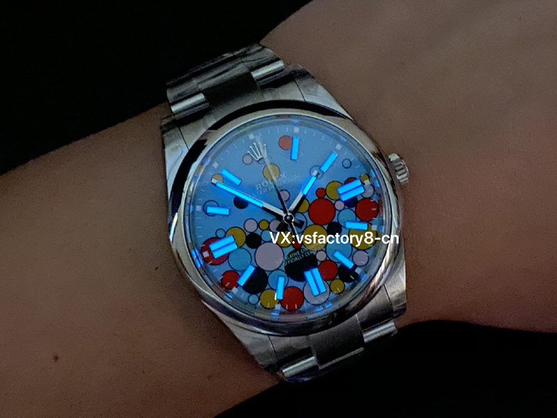 VS厂蚝式恒动气球的夜光粉使用原厂sl blue夜光粉,所以伴随粗糙以及黑点到特殊性。玩过或者见过的表友应该都不会太陌生。这已经是劳力士特有的属性。
