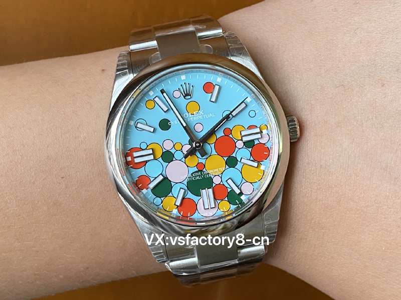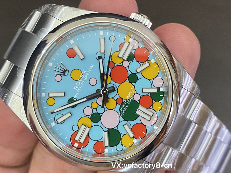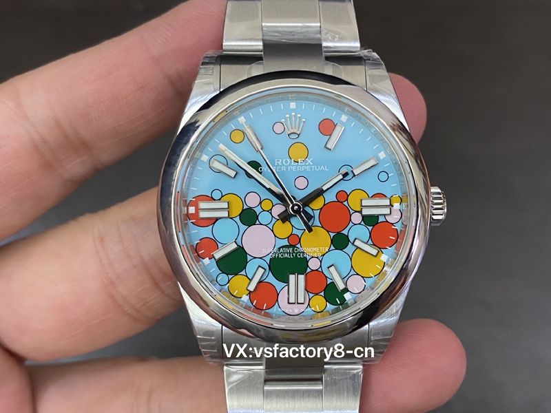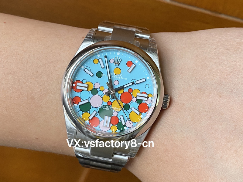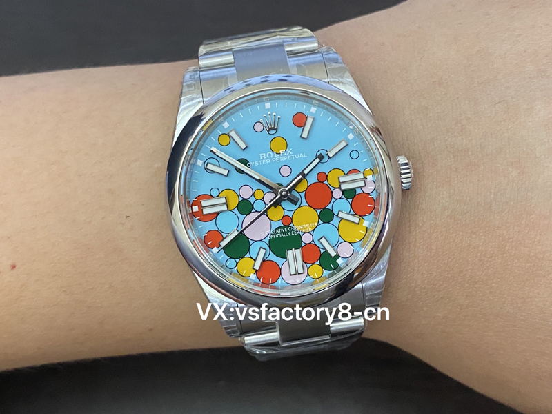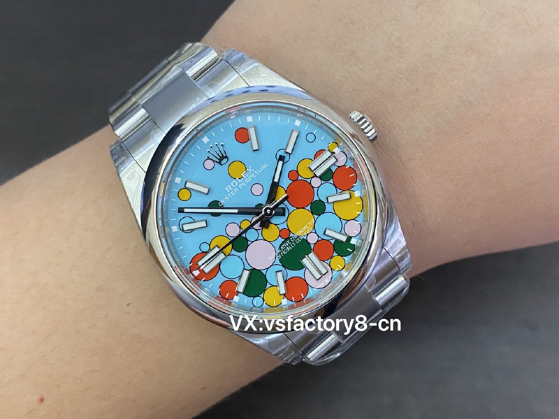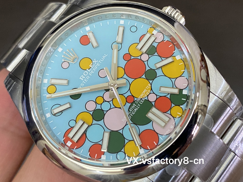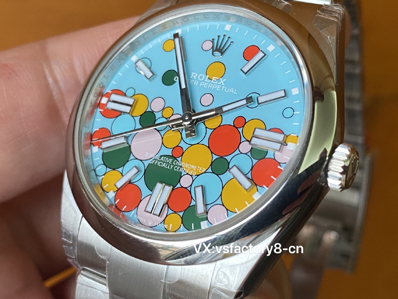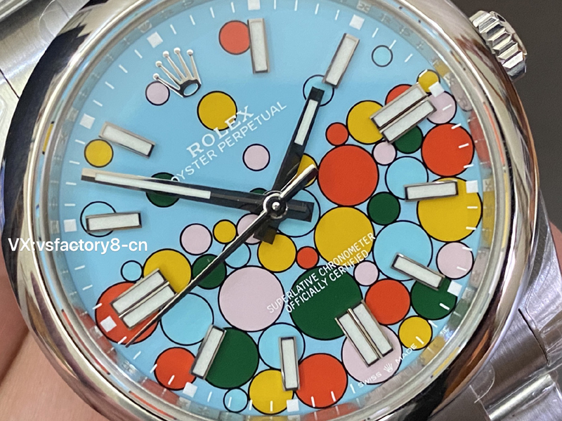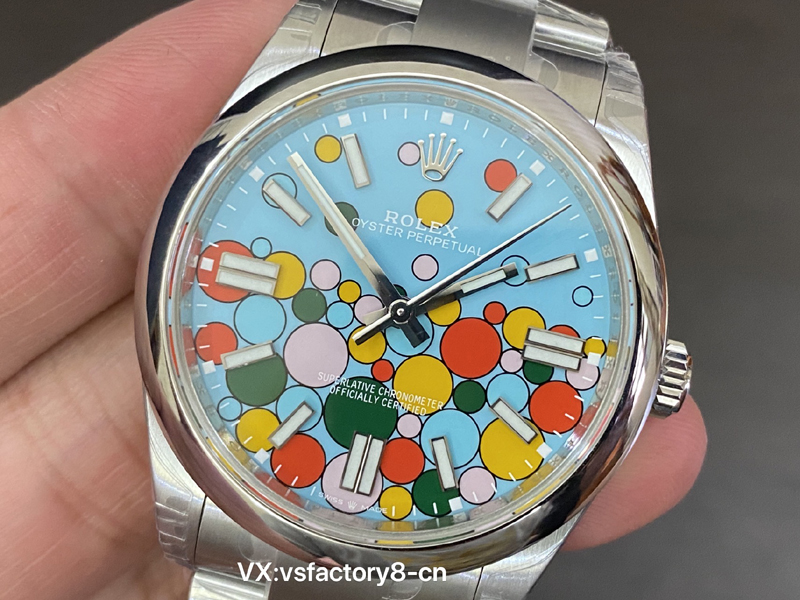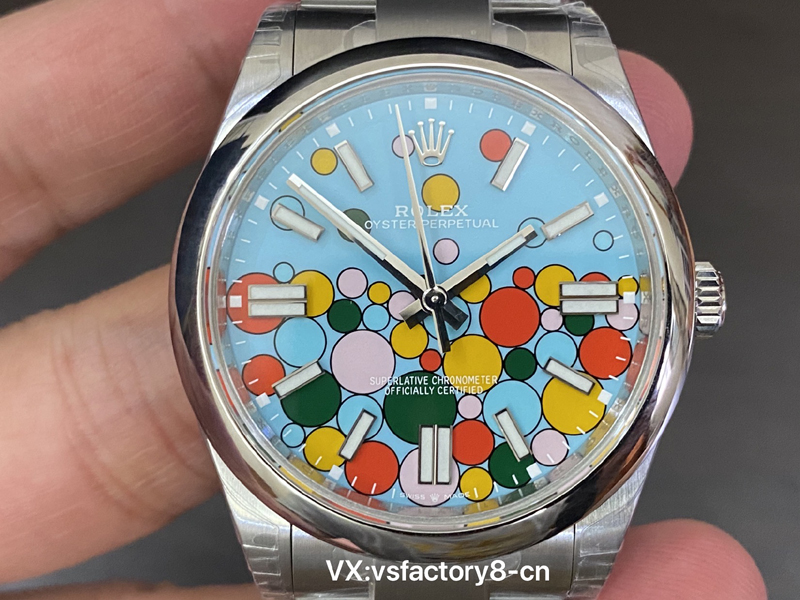 VS厂蚝式恒动气球的夜光粉使用原厂sl blue夜光粉,所以伴随粗糙以及黑点到特殊性。玩过或者见过的表友应该都不会太陌生。这已经是劳力士特有的属性。