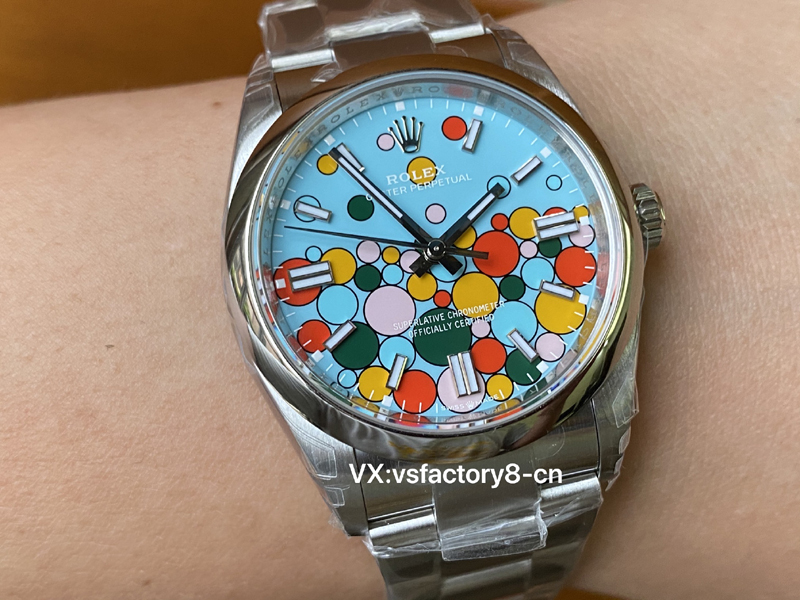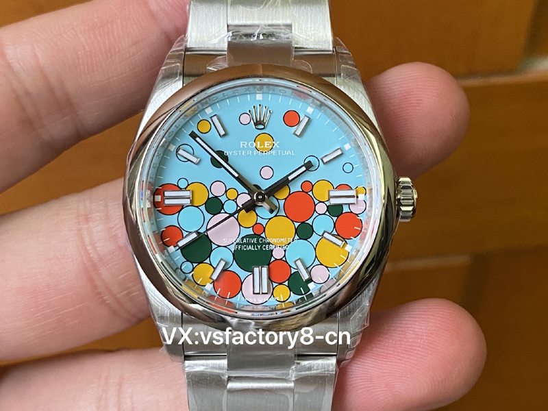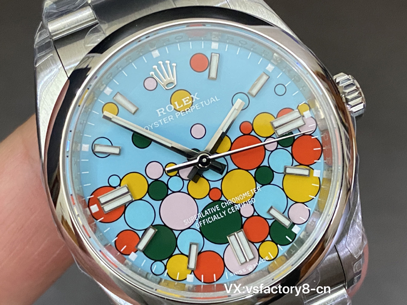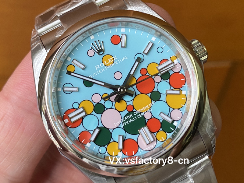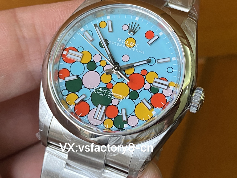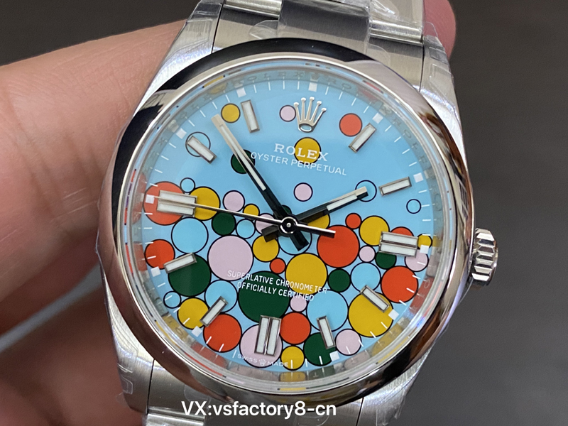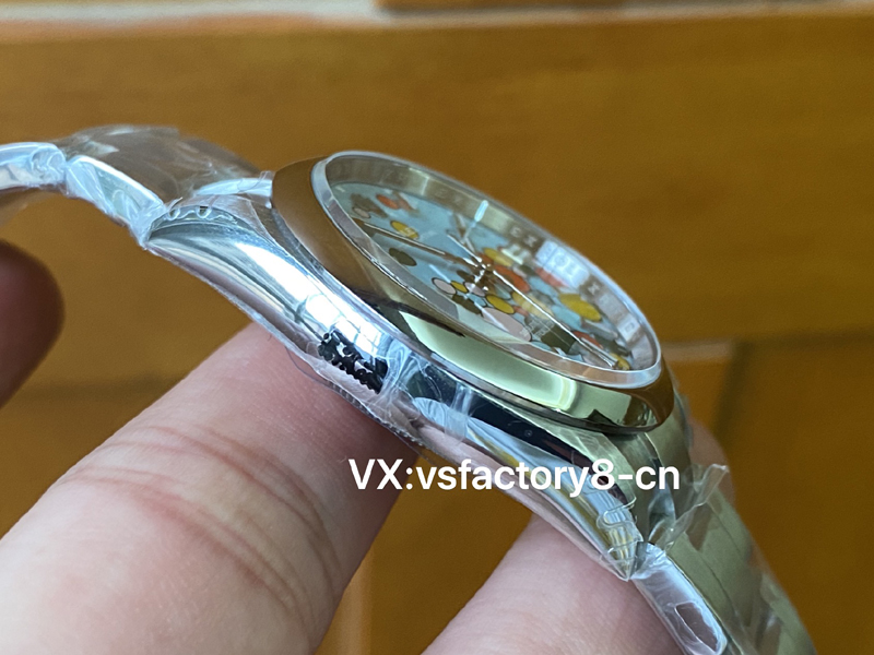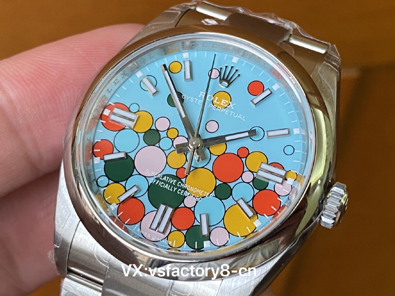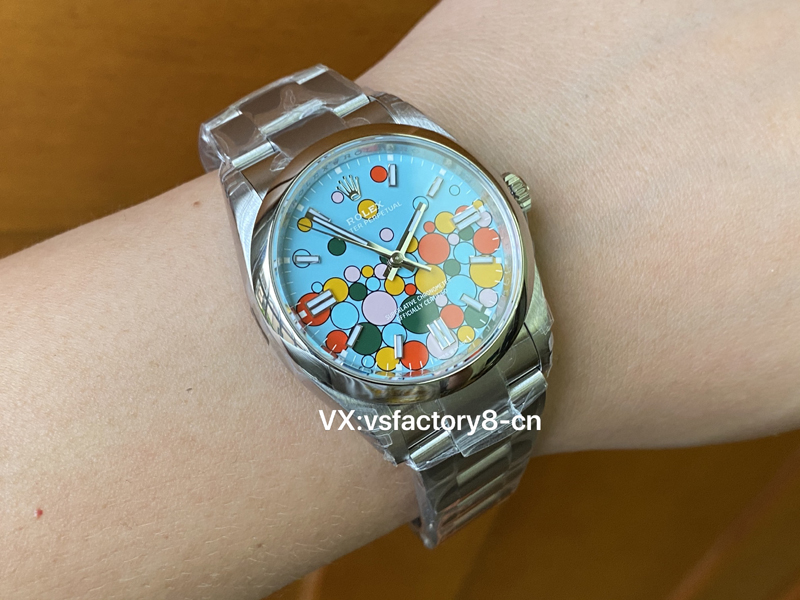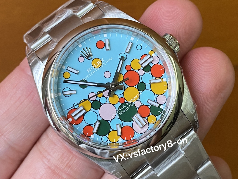 VS厂36mm蚝式恒动气球的夜光粉使用原厂sl blue夜光粉,所以伴随粗糙以及黑点到特殊性。玩过或者见过的表友应该都不会太陌生。这已经是劳力士特有的属性。