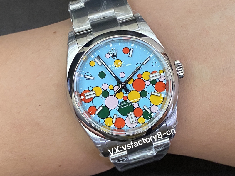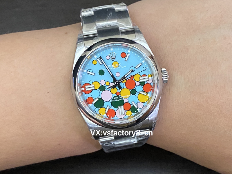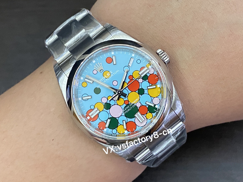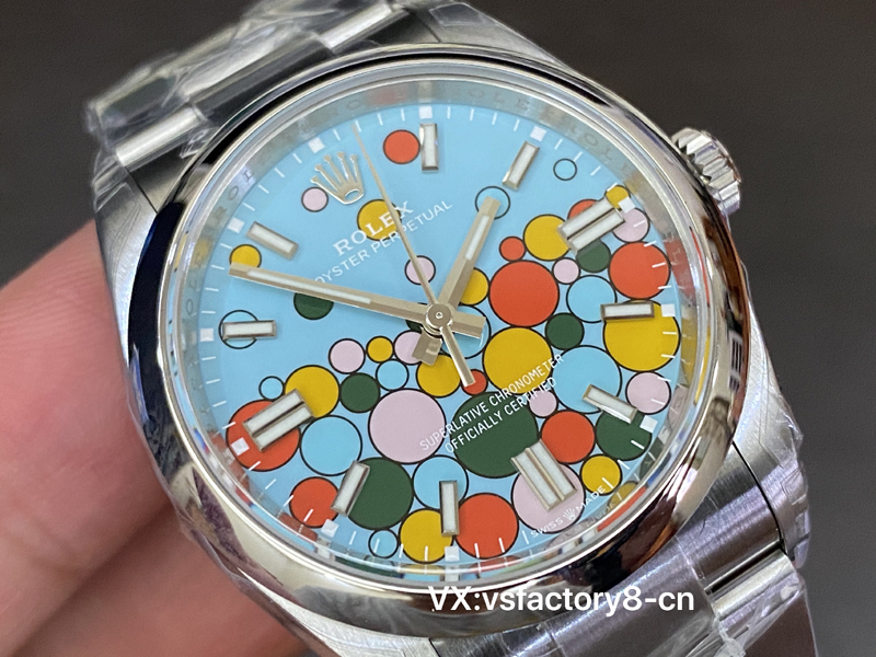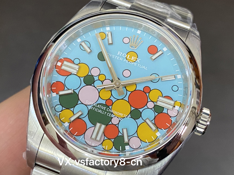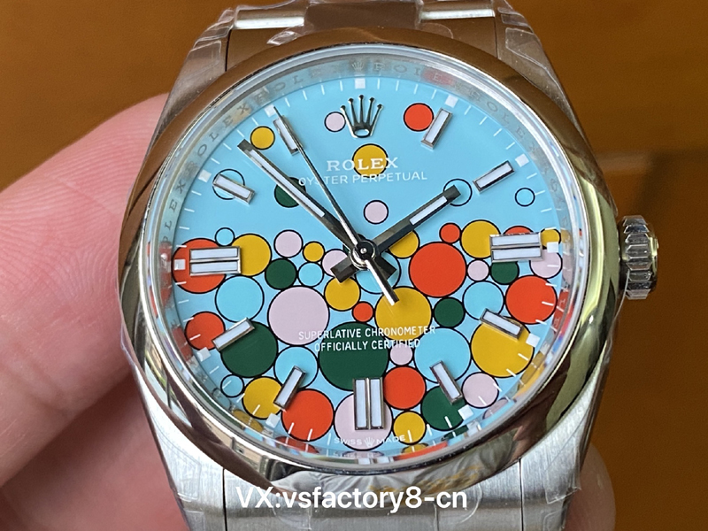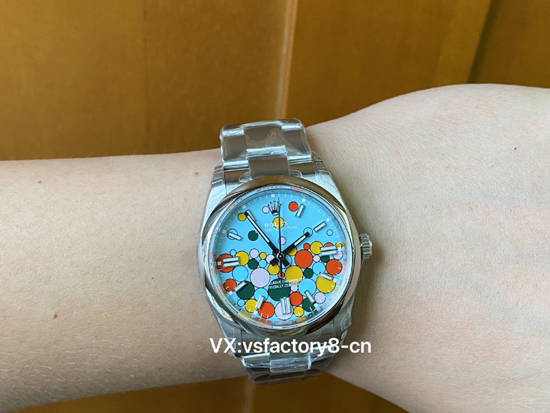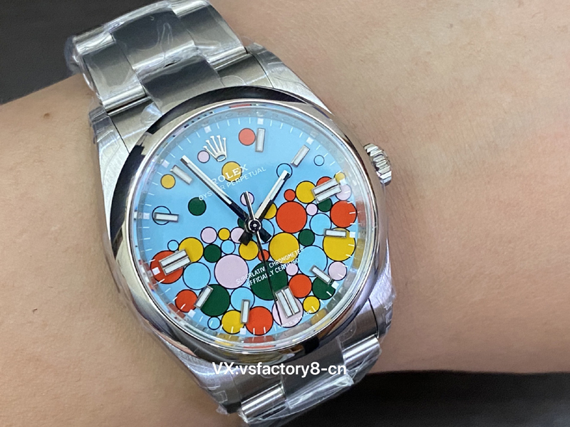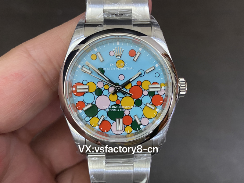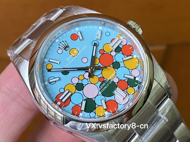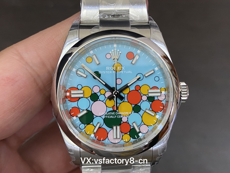 VS厂36mm蚝式恒动气球的夜光粉使用原厂sl blue夜光粉,所以伴随粗糙以及黑点到特殊性。玩过或者见过的表友应该都不会太陌生。这已经是劳力士特有的属性。