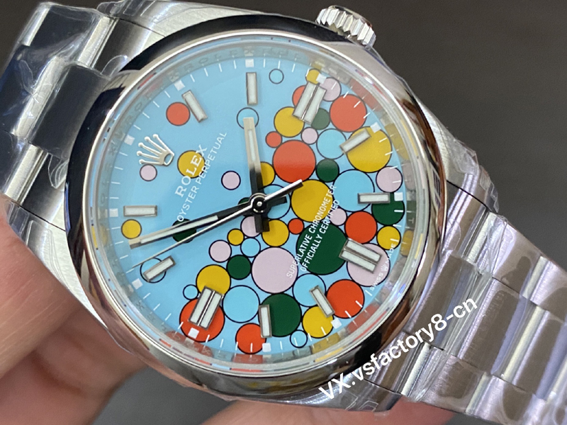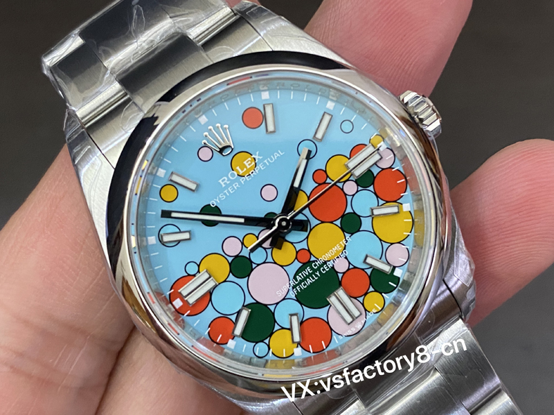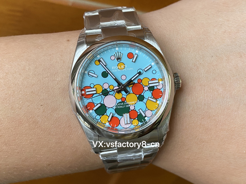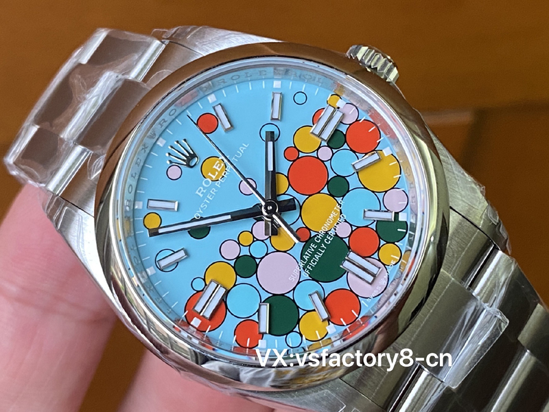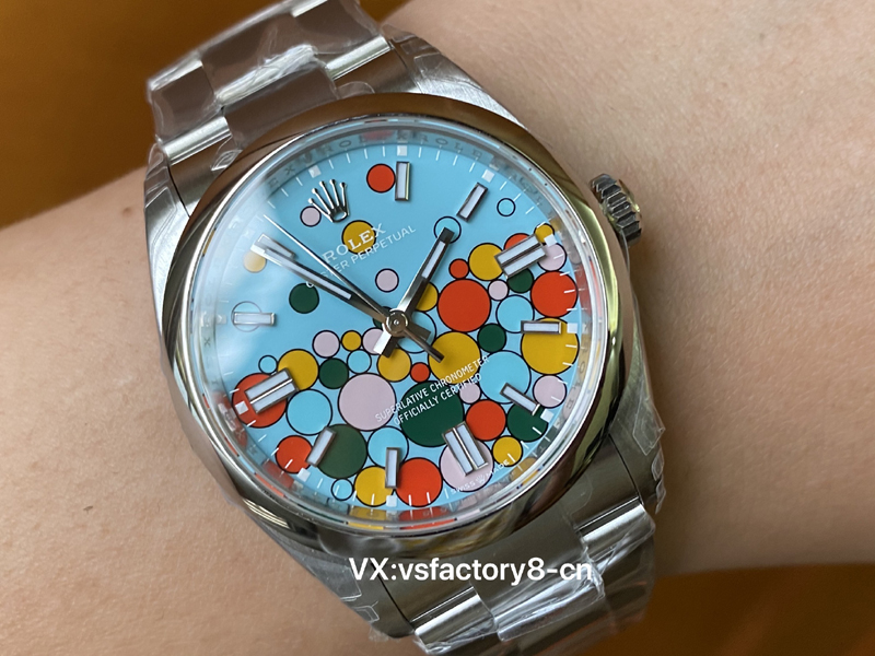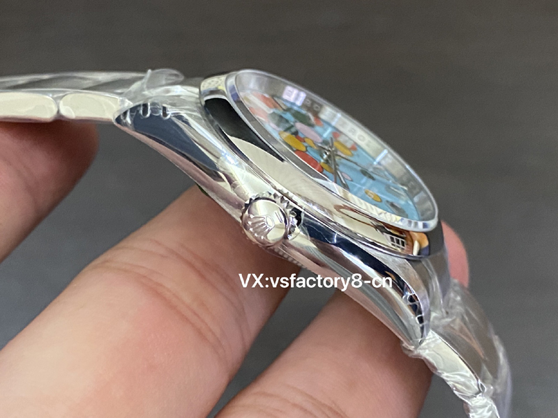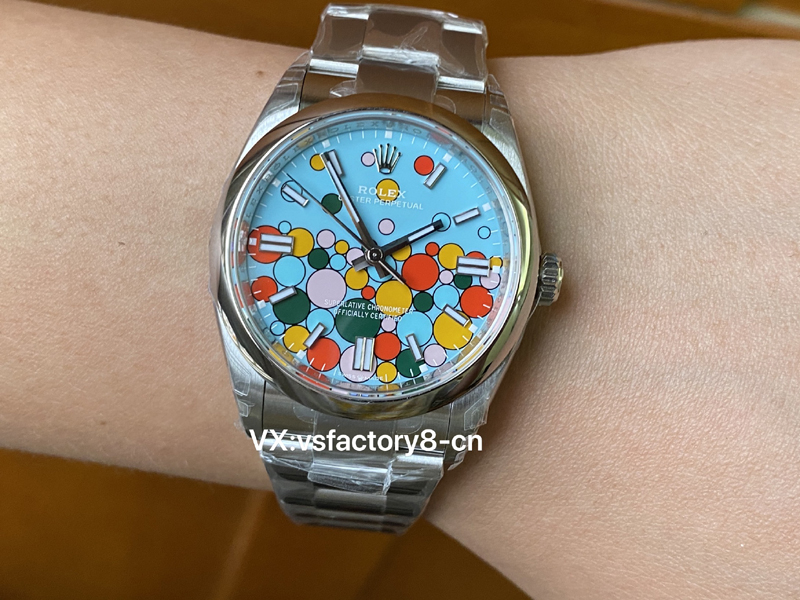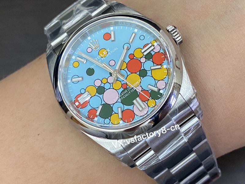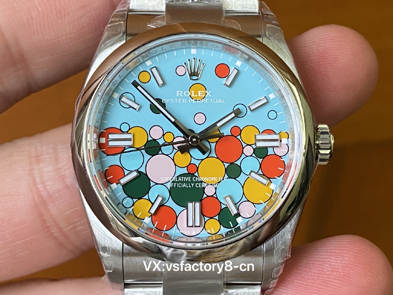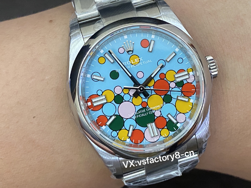 VS厂36mm蚝式恒动气球的夜光粉使用原厂sl blue夜光粉,所以伴随粗糙以及黑点到特殊性。玩过或者见过的表友应该都不会太陌生。这已经是劳力士特有的属性。