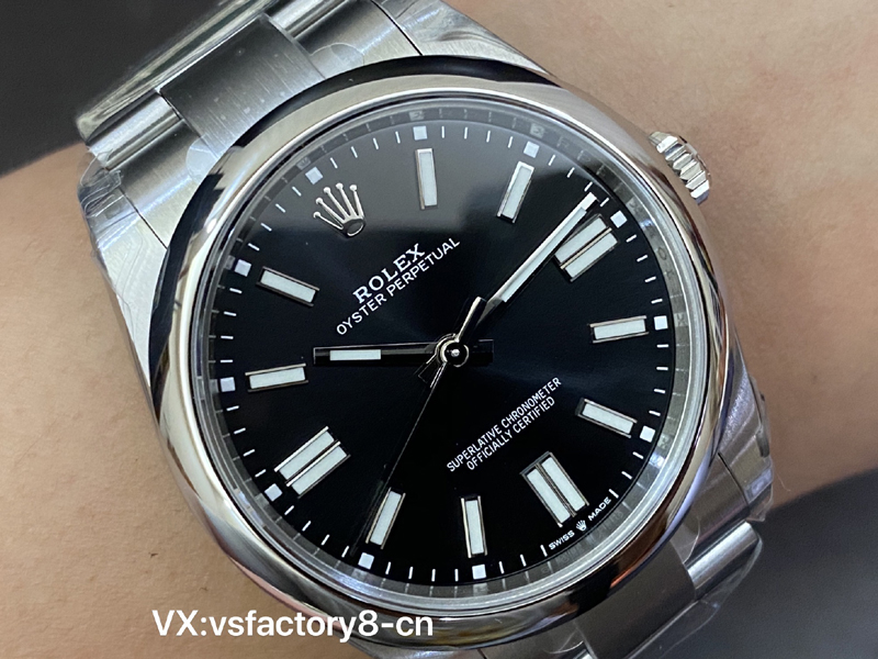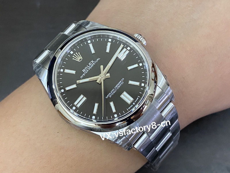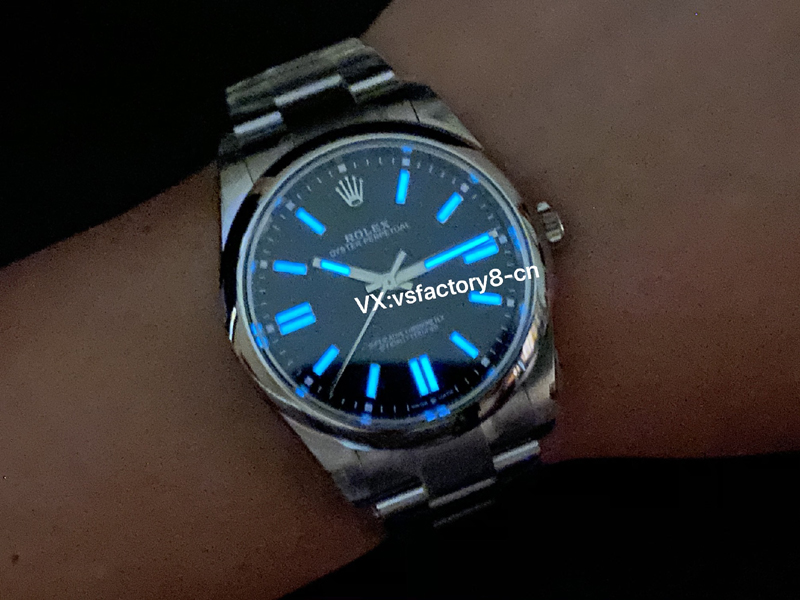 VS厂蚝式恒动黑面41mm的夜光粉使用原厂sl blue夜光粉,所以伴随粗糙以及黑点到特殊性。玩过或者见过的表友应该都不会太陌生。这已经是劳力士特有的属性。