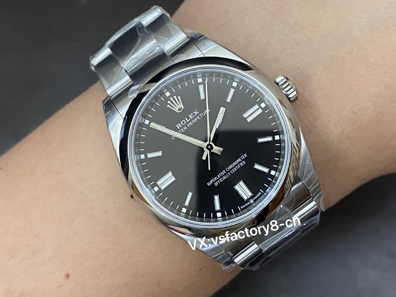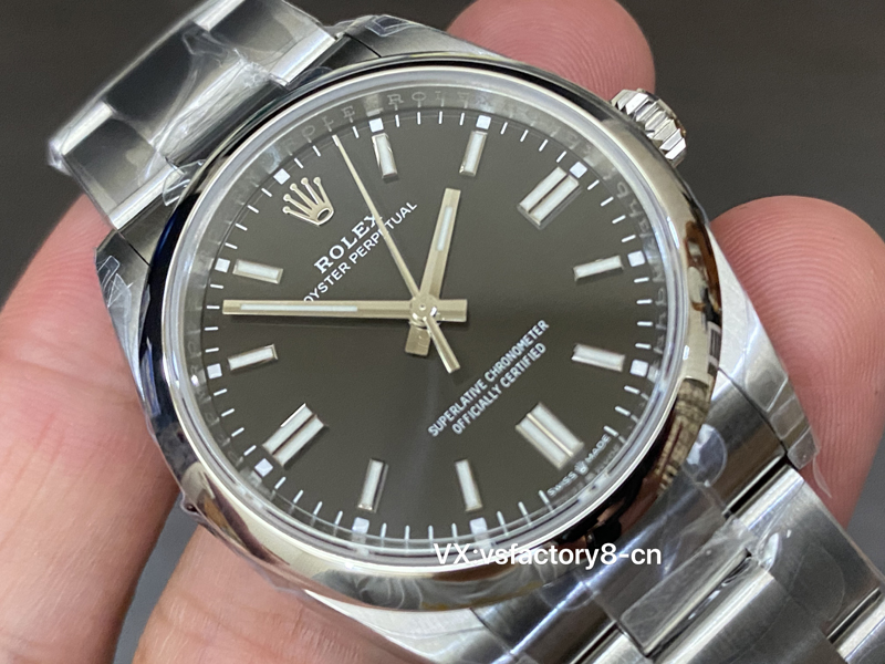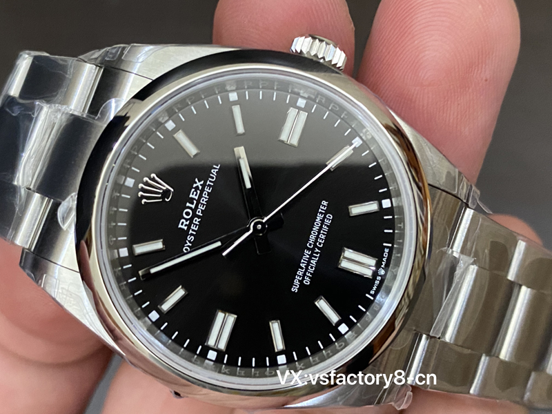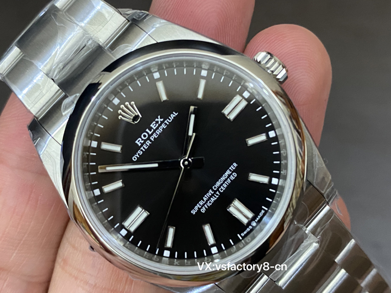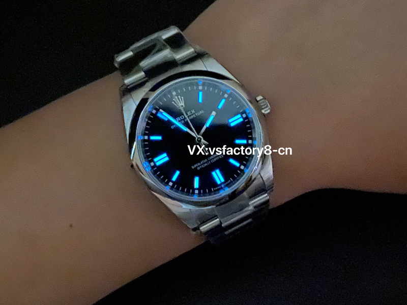 VS厂蚝式恒动黑面36mm的夜光粉使用原厂sl blue夜光粉,所以伴随粗糙以及黑点到特殊性。玩过或者见过的表友应该都不会太陌生。这已经是劳力士特有的属性。