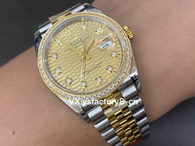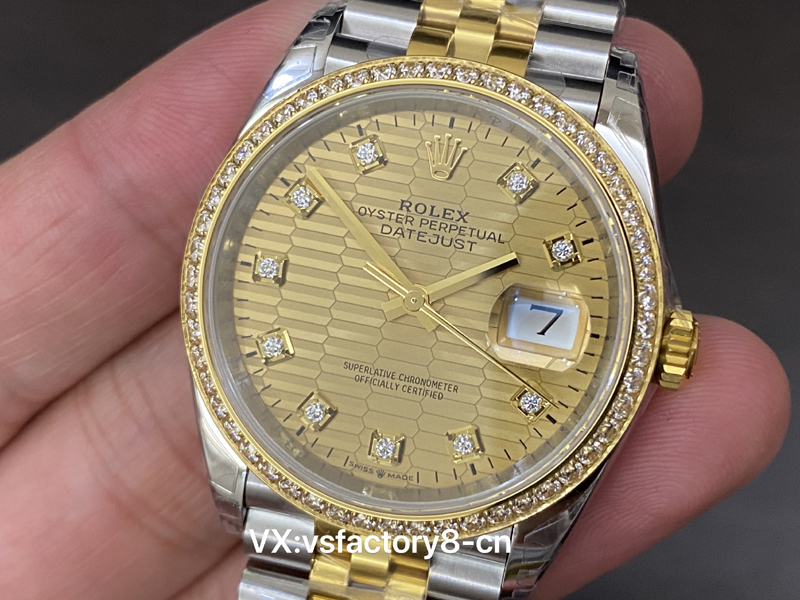 VS厂独家研发丹东3225一体机芯,站西市场VS厂官网独家唯一72动能储存版本。而且质量稳定,几乎不用返修售后。VS厂36M钻圈钻面日志金色格子钻面简单的鉴别办法:手表上链30圈后,静置,看能否走时40小时以上?自己就能鉴别版本,不用担心买到小厂冒充货。采用精钢904L壳套,最新的字面套件,细节近乎完美了,细节,机芯一步到位。可以闭眼入手。