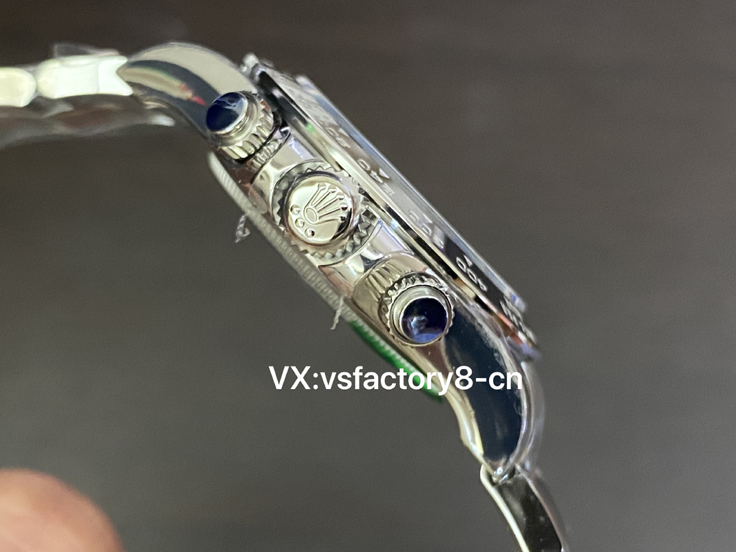 其他部分字钉,夜光,做的也很好/ps:上面有讲到真品4131以后指针的管头更改为圆柱形,但是VS厂迪通拿提供的4只真品,我们发现了几个问题,例如字钉的圆润度存在差异,指针有使用老款的锥形管头,所以劳力士官方可能在清理4130机的库存。