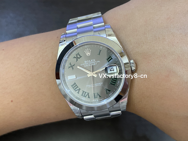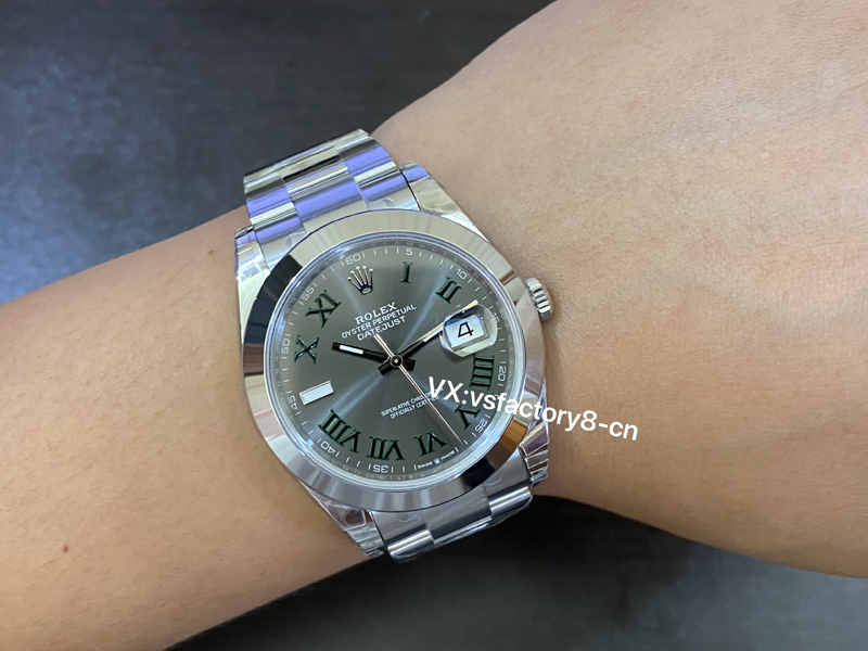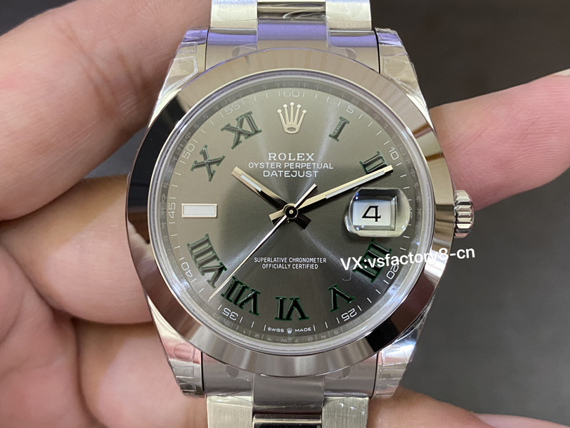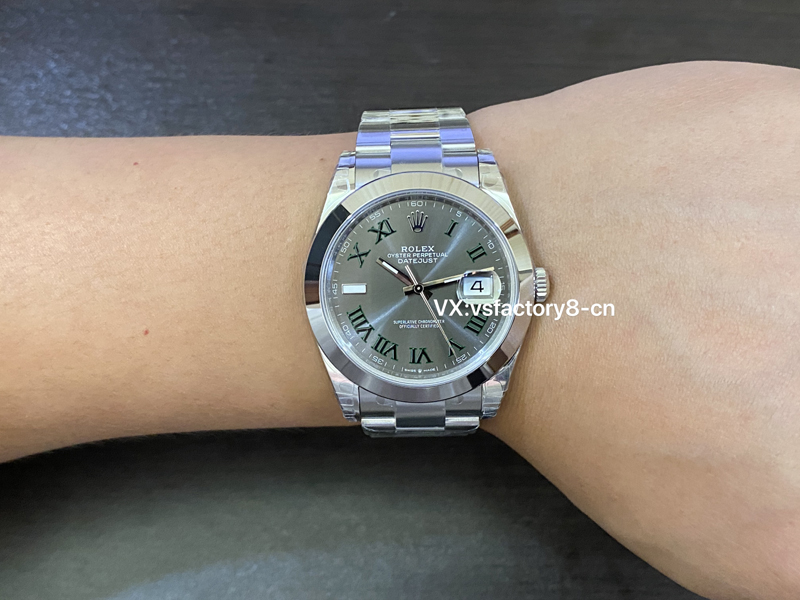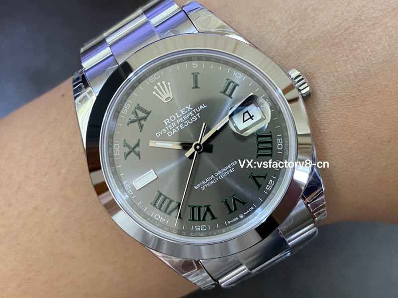 VS厂劳力士光圈绿萝日志41M“面”好,表盘太阳纹清晰细腻,淡雅光泽,隐约而独特,随着手腕摆动显不同光泽。