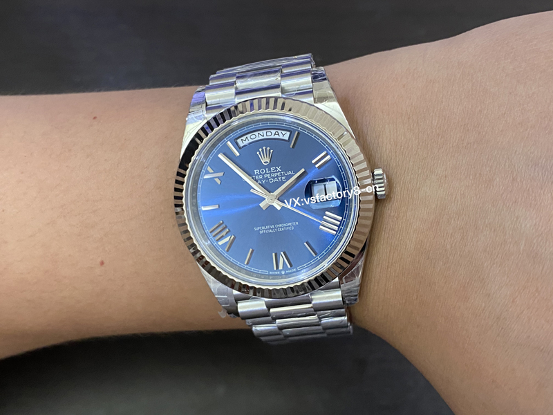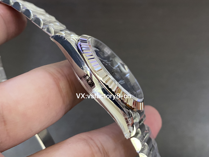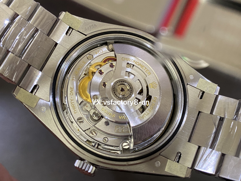 5,VS厂独立研发真正一体机心,所有配件形状(换日轮、日历定位、日历快调四齿轮均与原版一致。