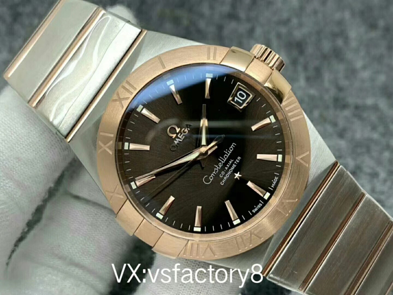 VS新品 欧米 茄 星座才是欧米 茄的精髓。38mm 8500一体机芯,一款非常具有鲜明特点,让人越来越觉得好看的款式。好看的皮囊千篇一律,有趣的万里挑一。VS星座就是那个值得去品味,不夸大,不搞虚假宣传的版本。 尺寸:38mm 机芯:8500机芯 功能:时,分,秒,日期 壳套:精钢壳套 表蒙:防划蓝宝石水晶 表盘:棕色表盘 表带:精钢表带 表扣:折叠扣 防水:> 50米 标签: