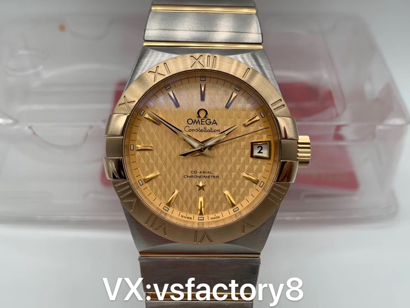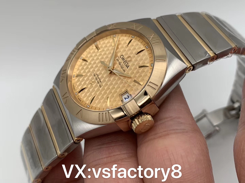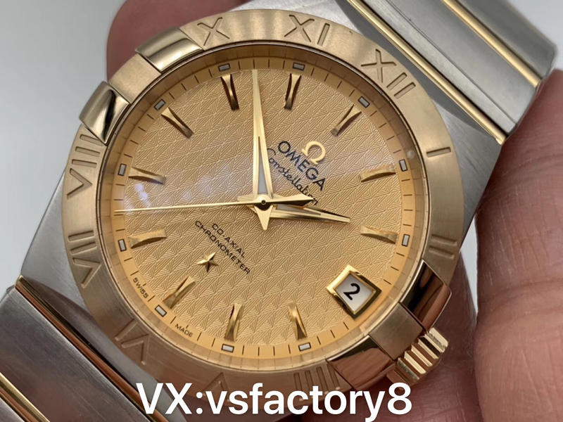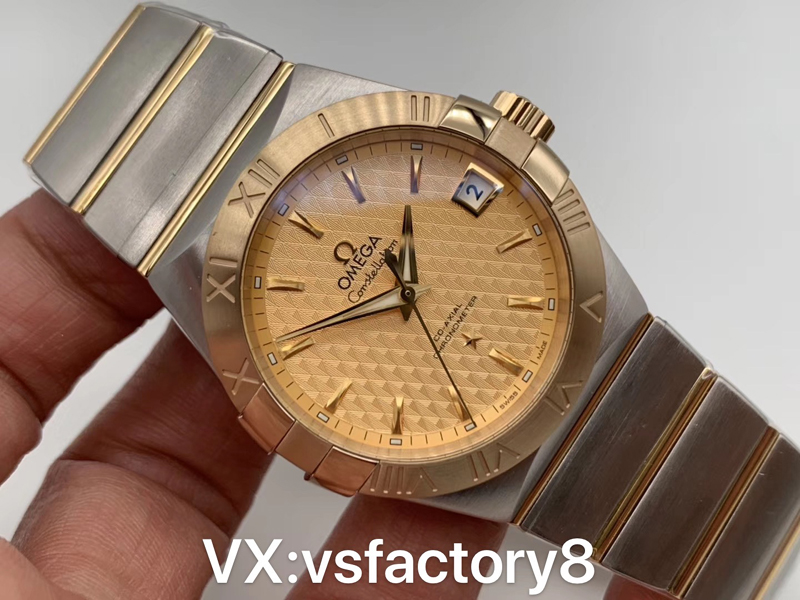 VS新品 欧米 茄 星座才是欧米 茄的精髓。38mm 8500一体机芯,一款非常具有鲜明特点,让人越来越觉得好看的款式。好看的皮囊千篇一律,有趣的万里挑一。VS星座就是那个值得去品味,不夸大,不搞虚假宣传的版本。 尺寸:38mm 机芯:8500机芯 功能:时,分,秒,日期 壳套:精钢壳套 表蒙:防划蓝宝石水晶 表盘:金色表盘 表带:精钢表带 表扣:折叠扣 防水:> 50米 标签: