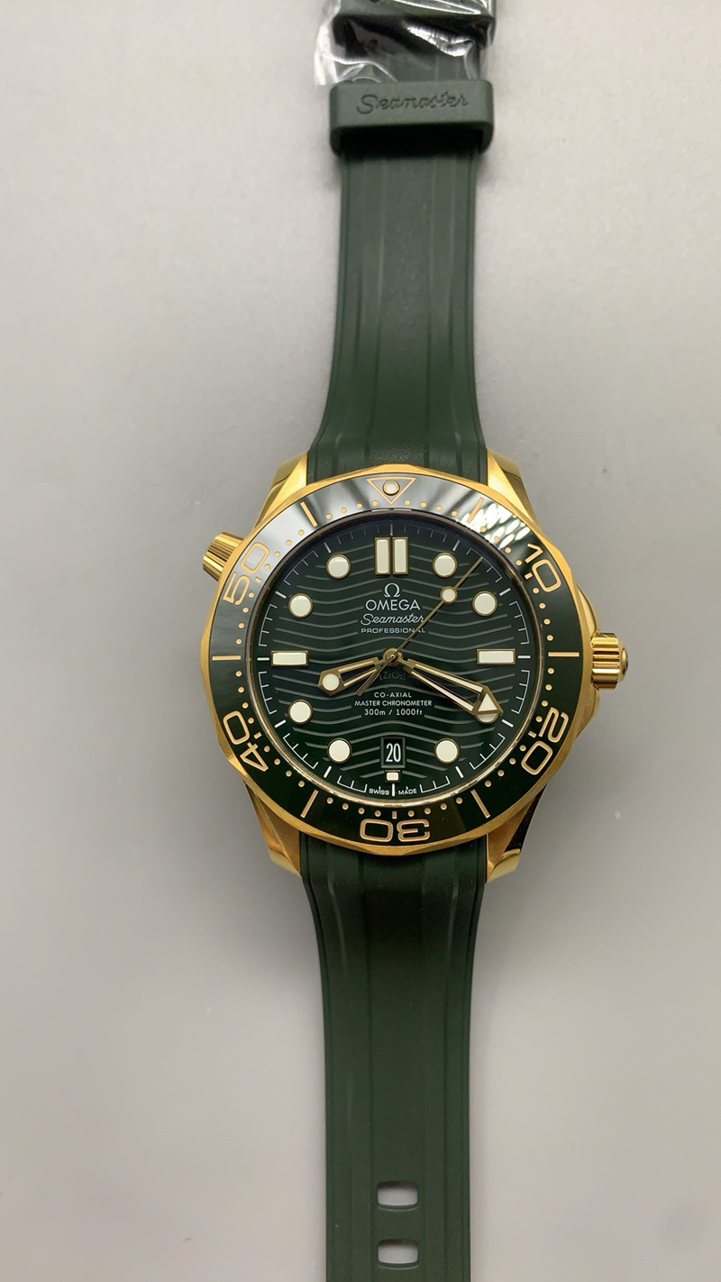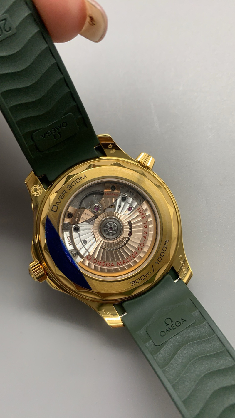 VS工厂2025年三月份全新绿金海马300米复刻表,稳定电镀层,不掉色。