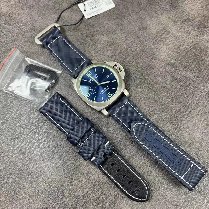 VS厂官网新品:VS厂沛纳海复刻表44MM “超级夜光”PAM1117 镂空三文治超级夜光表盘,金属镭射钛金属表壳,蓝色夜光缝线表带,恐怕去看电影也得穿长袖遮住它的“万丈光芒”,VS厂沛纳海复刻表而言透明式底壳设计,让每一个表友都能体验背透带来感受。采用缎面太阳放射饰纹蓝色字面与深蓝皮表带完美搭配,并饰以对比强烈的亚麻色缝线,对于这些的复刻与还原VS厂做的还是相当的好,VS厂手表官网出品! 尺寸:44MM 机芯:Cal.P.9010 功能:时,分,秒,日期 壳套:钛金属壳套 表蒙:防划蓝宝石水晶 表盘:蓝色表盘 表带:外层尼龙,内牛皮表带 表扣:钛金属表扣 防水:> 50米 标签: