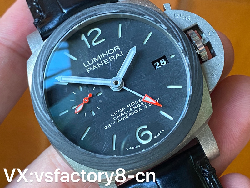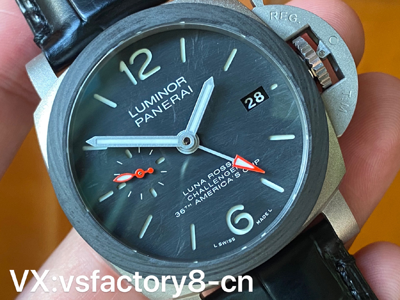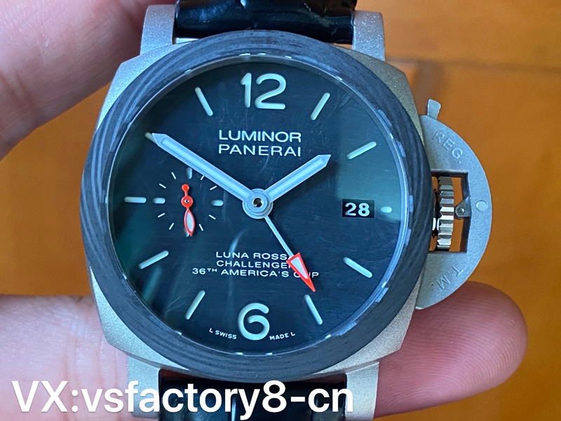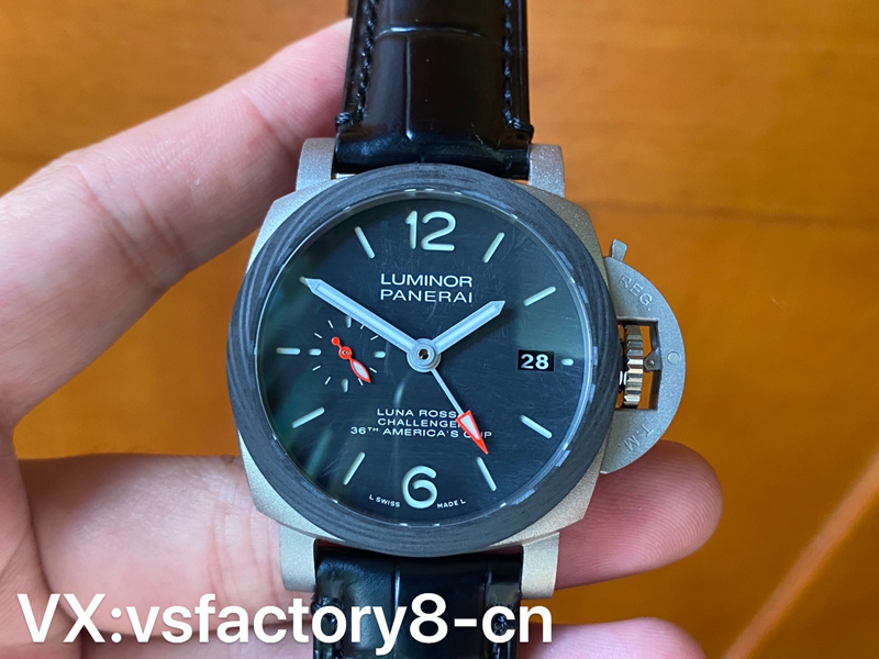 VS厂2023年新品预售:VS厂研发沛纳海PAM1096复刻表实拍图,尺寸42MM, Luna Rossa特别款,搭载VS厂成熟复刻碳纤维表圈,钛合金镭射激光錶身,配有GMT两地时间,拥有VS工厂独家研发P.9010一体机芯,功能完全对版,最精妙的地方在于錶面是采用真实的意大利队。