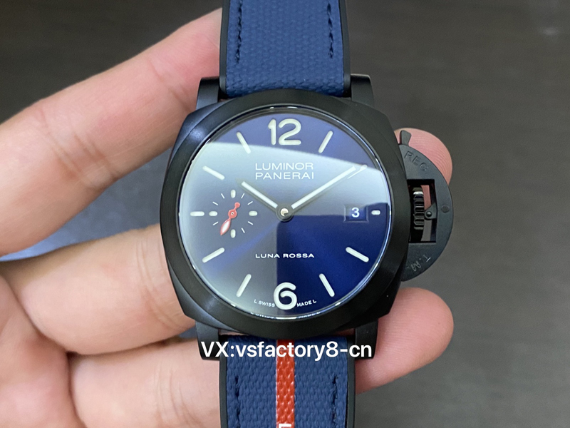 VS厂沛纳海PAM1048复刻表庐米诺系列 VS厂官网小编 2024-08-05 00:51:39 0 2024年八月份VS厂全新推出沛纳海PAM1048复刻腕表,VS厂还原一致正品沛纳海蓝色太阳放射纹表盘,夜光阿拉伯数字及小时标示;3点钟位置设日期显示;9点钟位置设小秒盘。 VS厂沛纳海1048复刻版采取正品一致全陶瓷表壳,防划痕,不褪色,不会旧;搭配VS工厂研发一体P.9011机芯,功能...