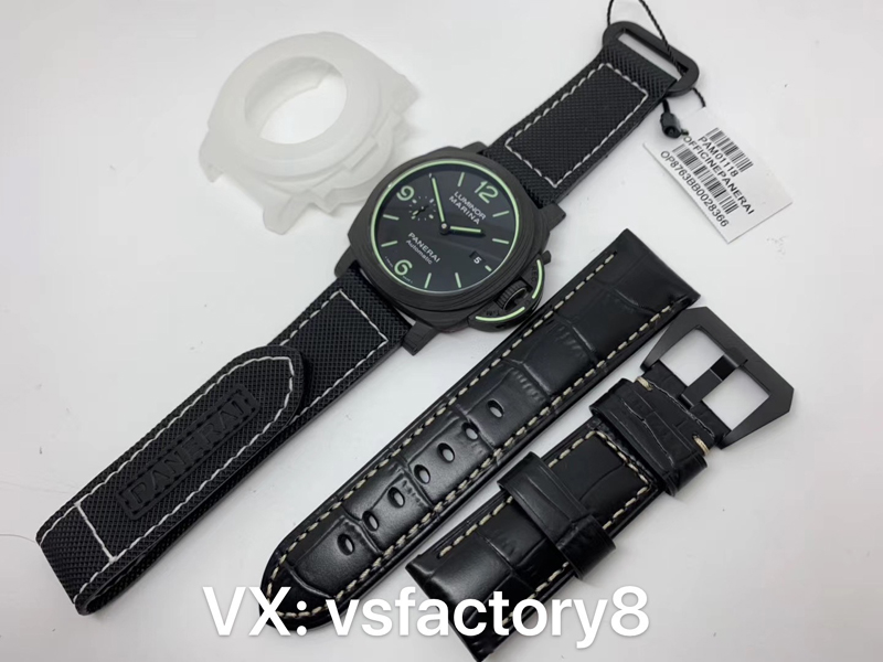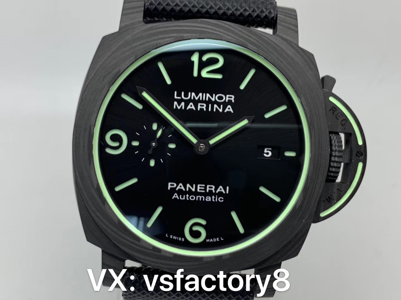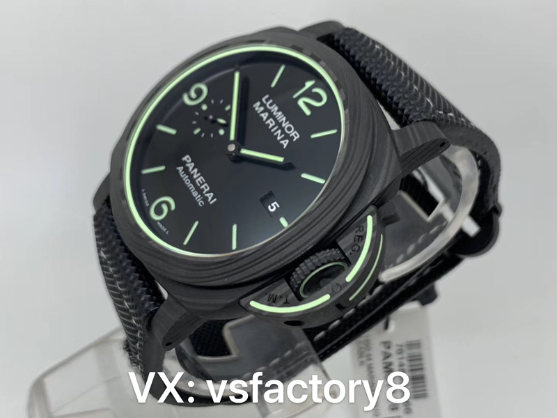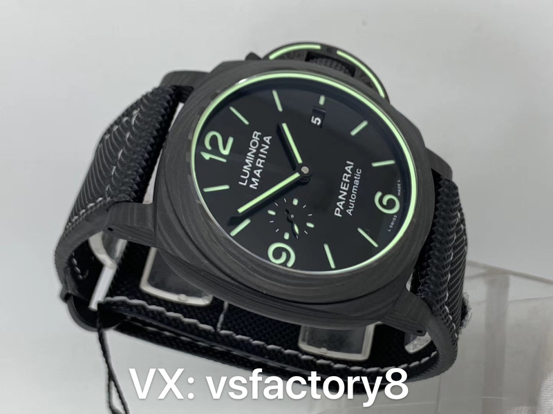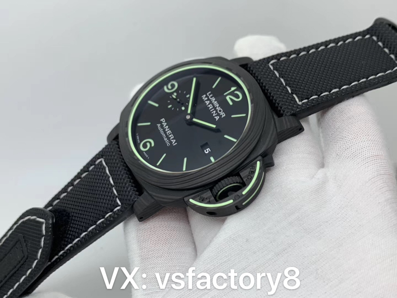 VS2020新品:沛纳海PAM1118 44 MM碳纤维 致敬经典传奇夜光,全新夜光设计,颠覆传统,传承经典!不拘一格的创新突破,为独具个性的你而来!!火爆到一表难求目前仍然断货,继而VS 直接推出PAM 1119 44mm (预售款,先到先得)超级夜光真心漂亮!戴上它你就是这条街(Gai)最亮的仔。 尺寸:44M 机芯:Cal.P.9010 功能:时,分,秒,日期 壳套:碳钎维壳套 表蒙:防划蓝宝石水晶 表盘:黑色表盘 表带:外层尼龙,内牛皮表带 表扣:钛金属表扣 防水:> 50米 标签: