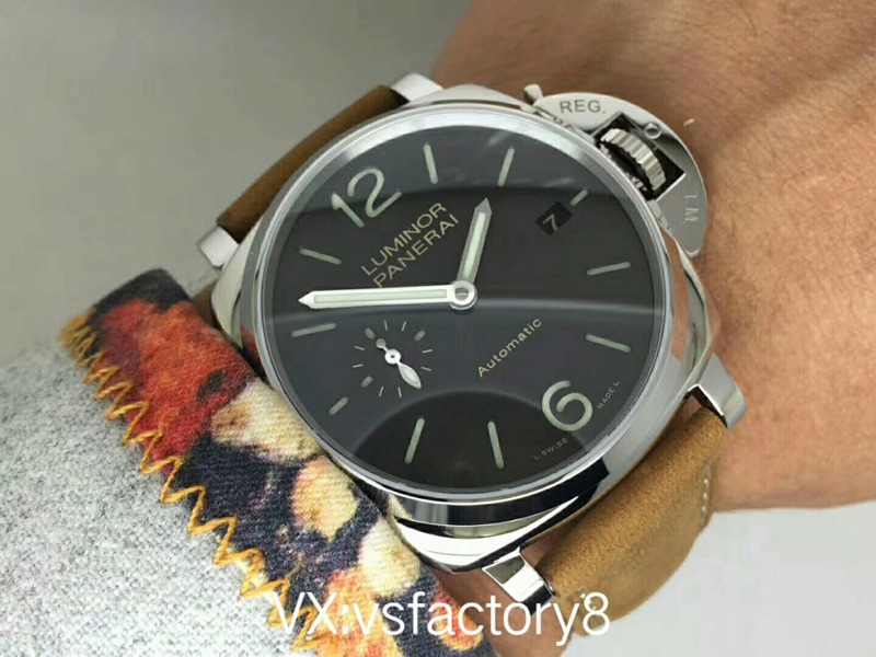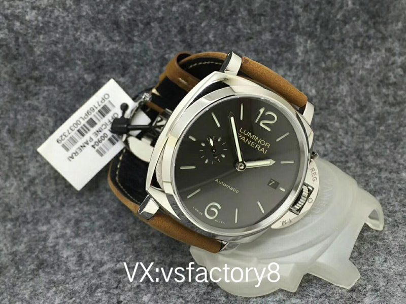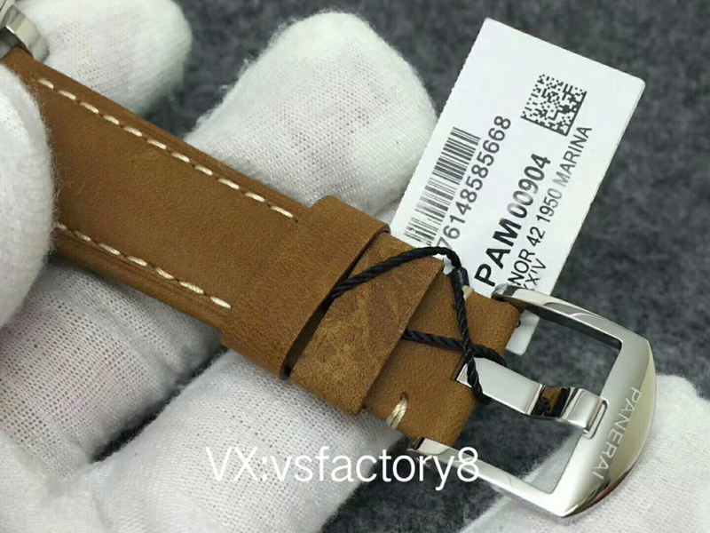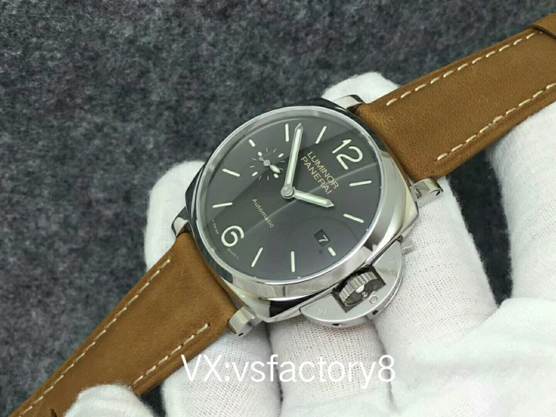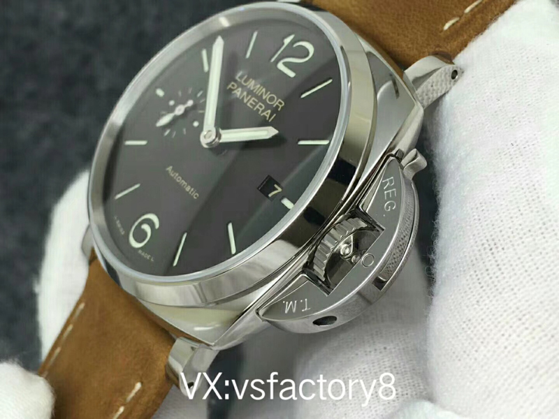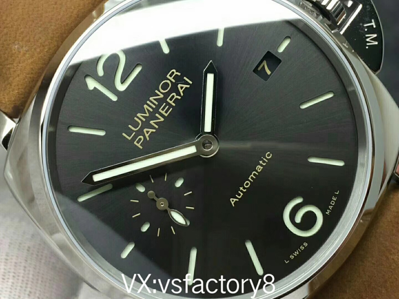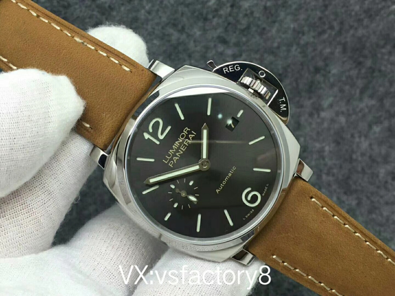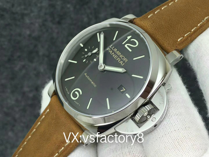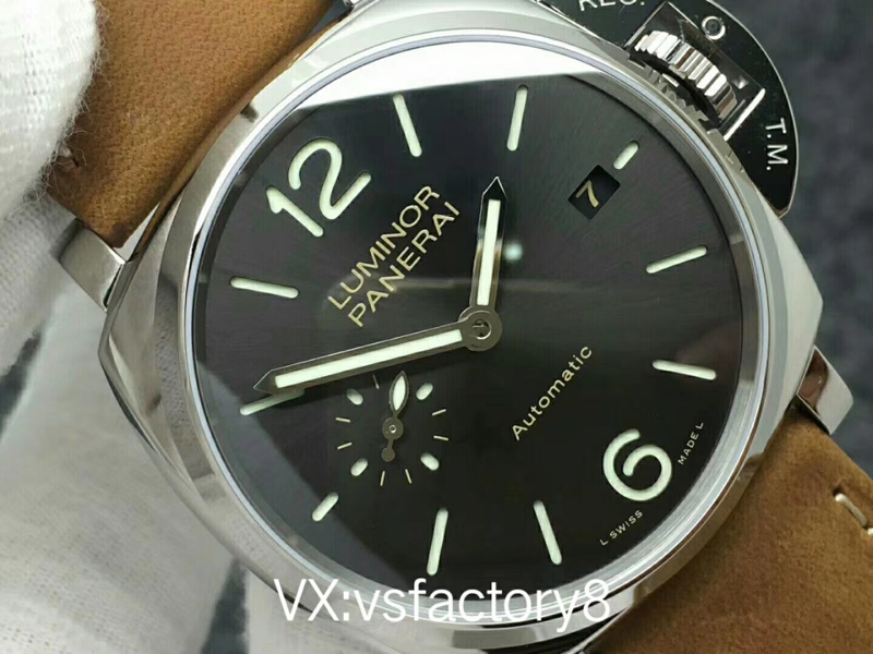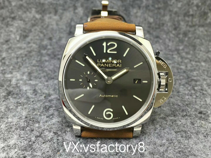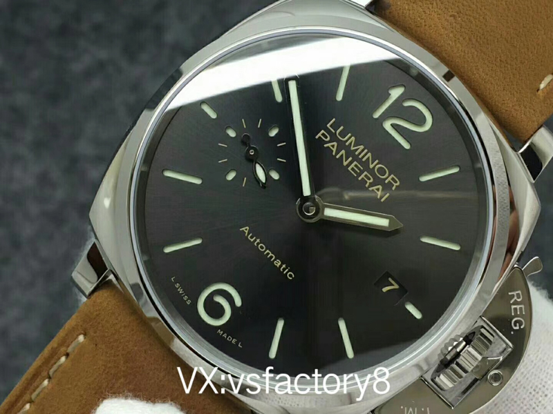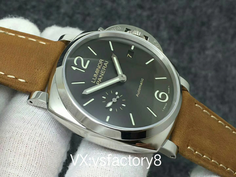 VS厂沛纳海PAM904 PANERAI LUMINOR DUE自动腕表 PAM00904 PAM904 VS厂904 904 精钢超薄抛光表壳 带滚轴保险护桥表冠 蓝宝石镜面 灰色日晖纹表盘 抛光表针 超强夜光 (仿制正品机芯结构,调节方式和正品一样,不是7750或者天津机改夹板,时针单独快调,日历通过时针带动调节,日历可逆调,比如从18号调到17号,摆的位置和正品一致了,摆轮有砝码,码轮在下方能用) 风马皮表带 精钢针扣 42mm VS厂出品!